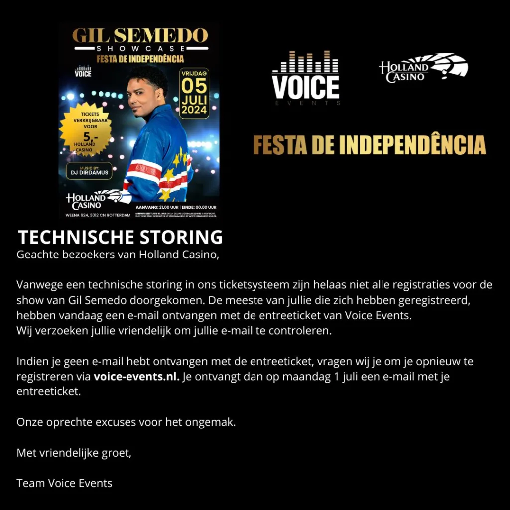 ISM HOLLAND CASINO GEEFT VOICE EVENTS EEN PAAR HONDERD ENTREE VOUCHERS WEG VOOR DEZE SHOWCASE TIJDENS DE VIERING VAN KAAPVERDISCHE ONAFHANKELIJKHEIDSDAG